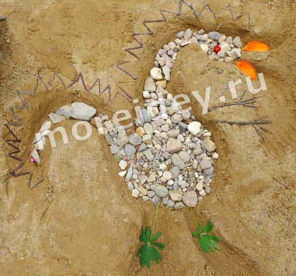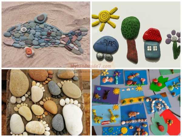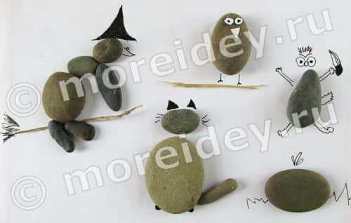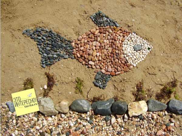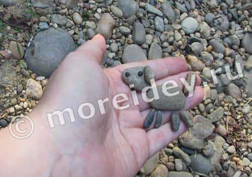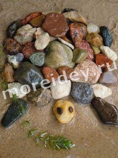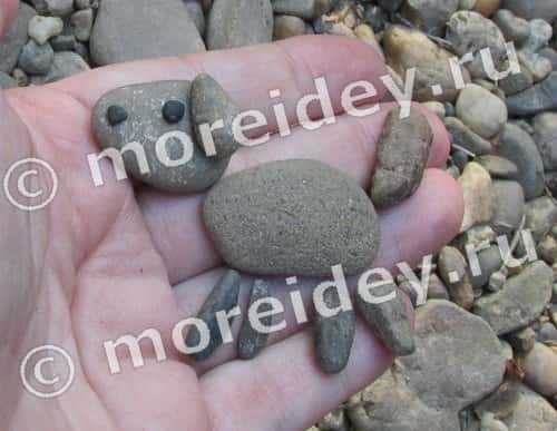 А вот поделки из морских камней своими руками можно выполнять непосредственно на морском побережье, чтобы занять своих детей и разнообразить их отдых. Насобирав камушков разного размера, на песке можно выложить следы, которые будут вести от входа на пляж до морского берега. Можно вместе с другими детьми выложить на песке дельфина или золотую рыбку.