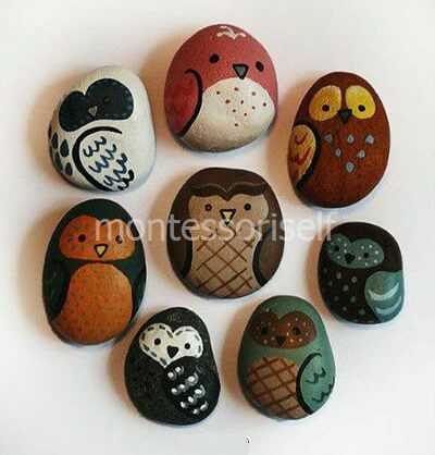 Особой популярностью пользуется роспись, которая позволяет выполнить оригинальные фигурки, подарочные магнитики, дизайнерские штучки, которые прекрасно дополнять ваш домашний интерьер, привнеся в него яркие краски. Но для росписи необходимо обладать определенными художественными навыками, поэтому это занятие может понравиться не всем. Краски надо выбирать те, которые бы хорошо ложились на каменную поверхность, это могут быть акриловые краски или эмаль. Лучше всего для росписи подходит галька речная и морская, поскольку ее поверхность практически идеально гладкая и краска ложится ровно.