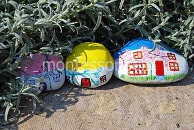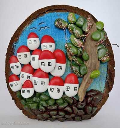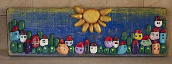 Делаем аппликации из камней своими руками для детей: «Веселые домики»