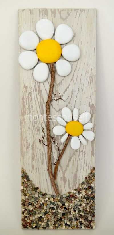 Из цветных камней можно сделать панно «Цветы» и «Ромашки».