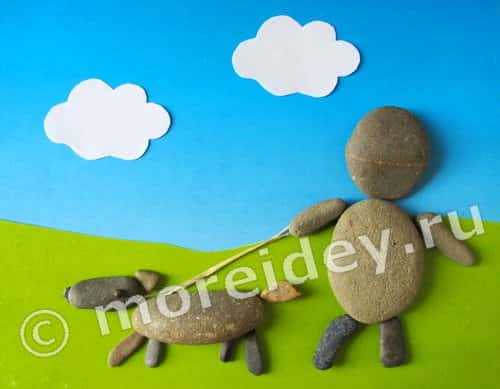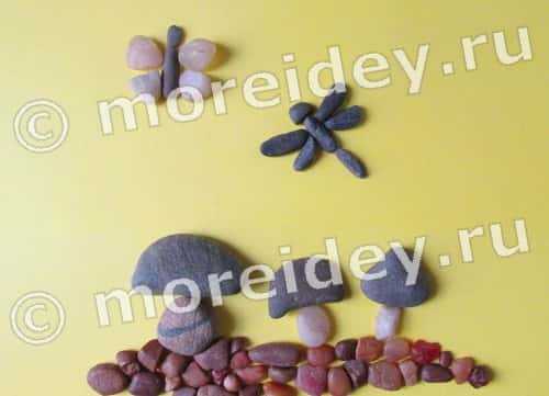 Даже такой природный материал, как камни прекрасно подойдет для творчества. Приведем пошаговой инструктаж, как сделать аппликацию из камней.