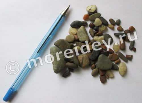 Камни (галька) для этого могут быть любыми: и морскими, и самыми обычными, найденными возле речки, дороги, привезенными для ремонта или стройки.