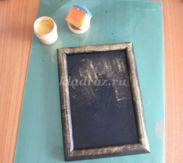 - При помощи губки позолотим контур рамки и изобразим свет от будущей луны, используя акриловую краску