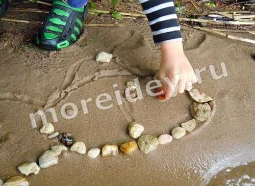 Можно предложить еще на отдыхе прямо на песке малышу составить из камней картинку. Первый раз можно его направить и помочь. Разыскать недостающий элемент, подать несложную идею. Но сделанную на песке картинку нельзя унести с собой и показать близким и друзьям.