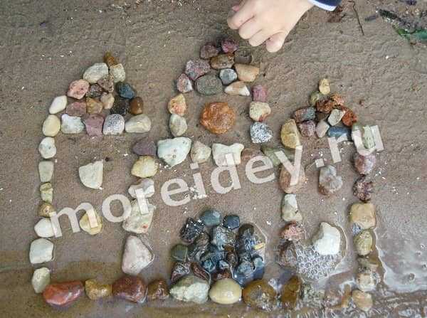 Часто дети, гуляя по побережью моря, собирают камушки и делают из них разные постройки. Они рассматривают предметы, понимают, что те могут быть разной формы, структуры, цвета, даже оттенка. Иногда отдельный элемент напоминает ребенку кого-то, похож на сердечко или рыбку, треугольник или конус.