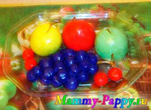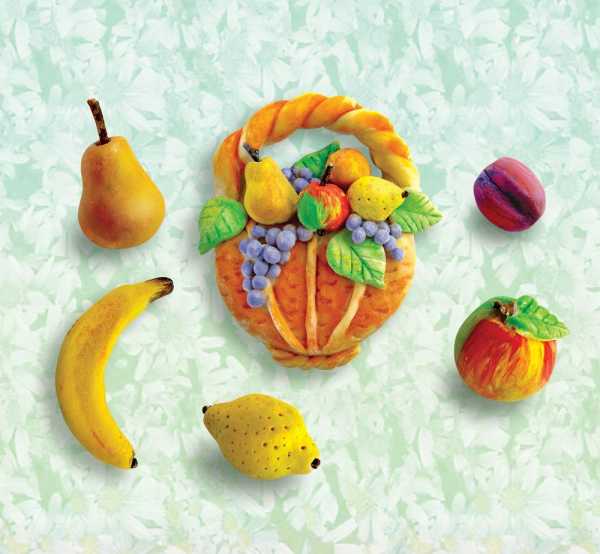 - Можно вылепить другие плоды (ананас, арбуз, гранат, банан и т. п.) и, комбинируя их, создать свою композицию.
