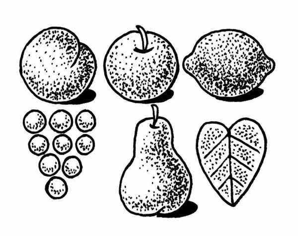 Раскрасить фрукты и листья.