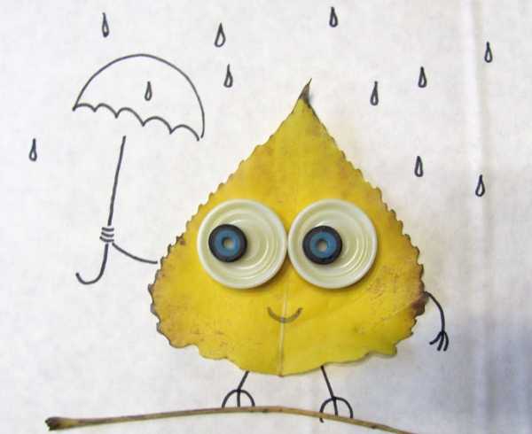 3. Аппликация с графикой. Эта техника очень интересна детям, которые могут проявить фантазию при создании сюжетов из листьев деревьев. Для этого необходимо взять лист бумаги, понравившийся осенний листочек, клей, простой карандаш, фломастеры. Листочек приклеивается к бумаге, а дальше начинает работать ваша фантазия. С помощью простого карандаша дорисовываются части и детали рисунка. После того, как все наброски будут сделаны, оцените полученный сюжет, и если вам все нравится, то приступайте к прорисовке своей картины фломастерами.