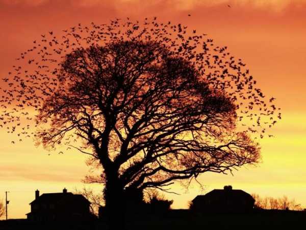 Основные образы, направленные на то, чтобы передать тоскливое, безрадостное настроение — это образ голых кустов, с которых опали последние листья, образ солнца, ушедшего за тучи и образ улетающих птиц.