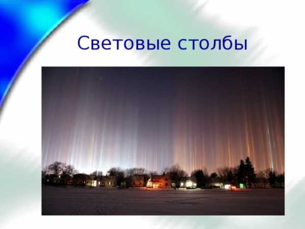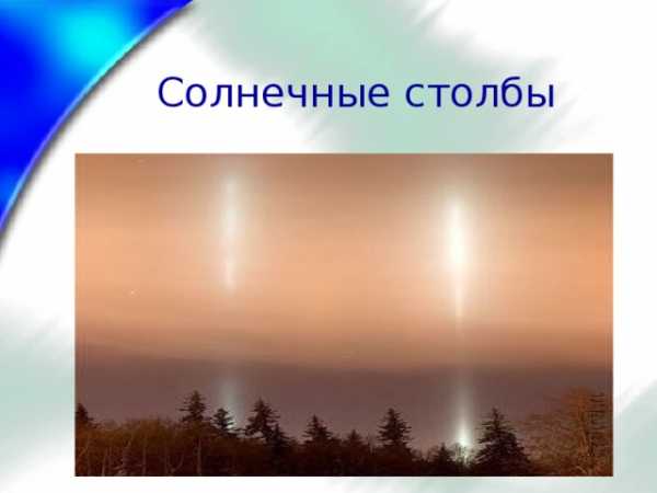 Еще с детства мы привыкли к таким явлениям природы, как красное солнце во время заката, затяжные холодные дожди осенью, кристальный иней или роса на траве… Данная презентация знакомит учащихся с довольно необычными природными явлениями, некоторые из которых пугают, некоторые настораживают, а некоторые просто заставляют любоваться и восхищаться ими.