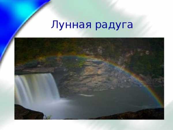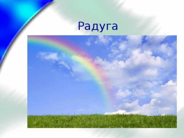 | Когда идёт дождь и светит солнце, на небе может появиться радуга. Радуга видна, когда лучи солнца проходят сквозь дождевые капли. Чем крупнее дождевые капли, тем ярче радуга. В радуге семь цветов, они располагаются всегда в одном и том же порядке: красный, оранжевый, жёлтый, зелёный, голубой, синий, фиолетовый. | |
