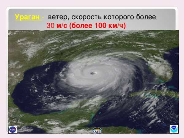 | Очень сильный ветер называется ураган. Чаще всего ураганы встречаются в конце лета. Бешеные порывы ветра могут сбрасывать поезда с рельсов, поднимать, как пушинки, в воздух тяжёлые автомобили. Искусственные спутники Земли, которые наблюдают за погодой на нашей планете, заранее предупреждают метеорологов об ураганах. | |